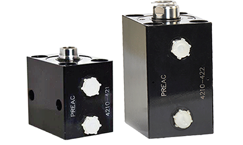These are push type, single acting, spring return cylinders which can be fitted either in tapped holes in the fixture or in a manifold.