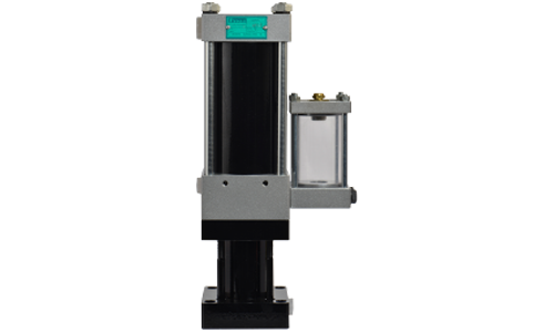 Uses the principal of intensification to convert the convenience of low pressure compressed air to the power of high pressure hydraulic oil. The small footprint of the cylinder is easily accommodated on compact high performance machines.